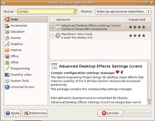 En cuanto a Compiz-Fusion... me habría gustado verlo, pero no pude después de más de una hora de trabajo, mirad mi post anterior, así que lo único que conozco es el vídeo de Youtube; al menos no tuve que pelearme con las consolas y los apt-gets, ni recurrir a ningún foro para poder disponer de Flip3D, se instaló con el Sistema Operativo. Y, como también he escrito en alguna ocasión, no sé que me aporta en mi trabajo ver las ventanas arrugándose, formando un torbellino o rotando en el monitor. (¿Y para hacer esas cosas no se "consumirán muchos recursos"?)